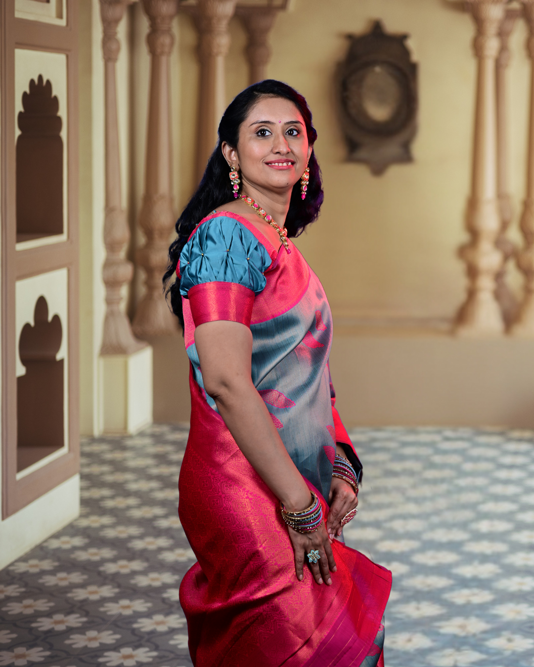 The tissue silk has such a graceful fall and doesn’t wrinkle even after sitting for hours. loved how the zari work sparkled under the photography lights.