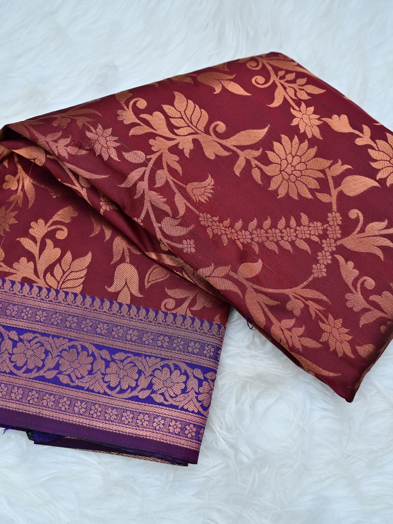 • Rich Copper Zari Work - Warm, lustrous copper threads woven throughout for sophisticated metallic highlights