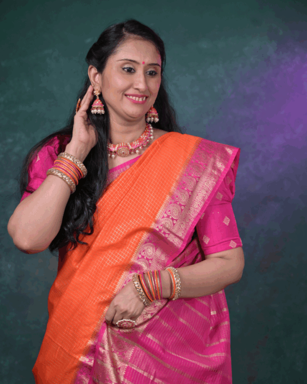 The saree was surprisingly light and comfortable. The complimentary blouse piece was a perfect match, and tailoring it was a breeze. I paired it with my antique temple jewellery! I can say its a good choice for go-to for all festivals and family functions.