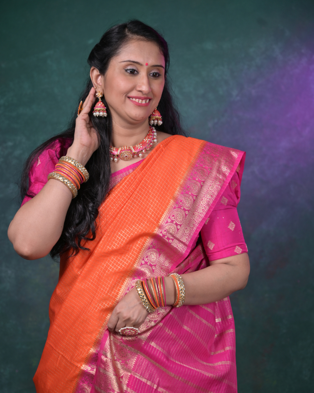 Colour | Orange with Rani Pink, Parrot green with purple, Light Purple with Parrot Green, Dark Purple with Parrot green |